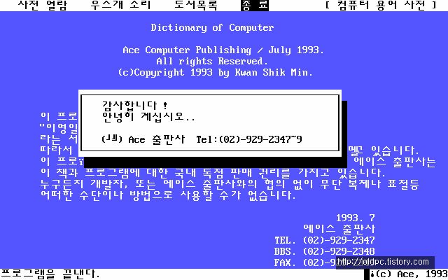 소프트웨어/잡지도서부록 권오철 이영일의 MS-DOS 6.0 용어사전 디스켓 하늘소^^ 2016. 7. 4. 12:27 제가 보유중인 권오철 이영일의 MS-DOS 6.0 용어사전 디스켓에서 추출 하였습니다.안에 포함되어 있는 hanme.com 을 먼저 실행하세요.dic.zipdic.IMG 저작자표시 (새창열림)