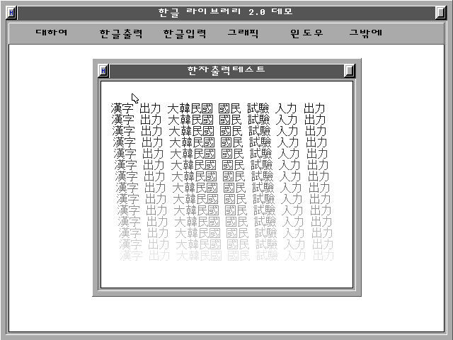 그 이유는 한글 라이브러리 2.0 이 BC++ 3.0 으로 컴파일 되었기 때문인