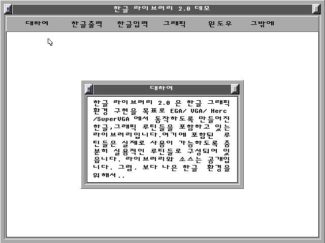 16 color 용 과 VGA 256 color 용 데모가 들어있다. 실행시켜 보면 한글 라